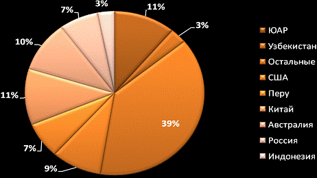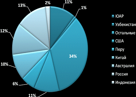 занимает 3-е место после ЮАР и США.