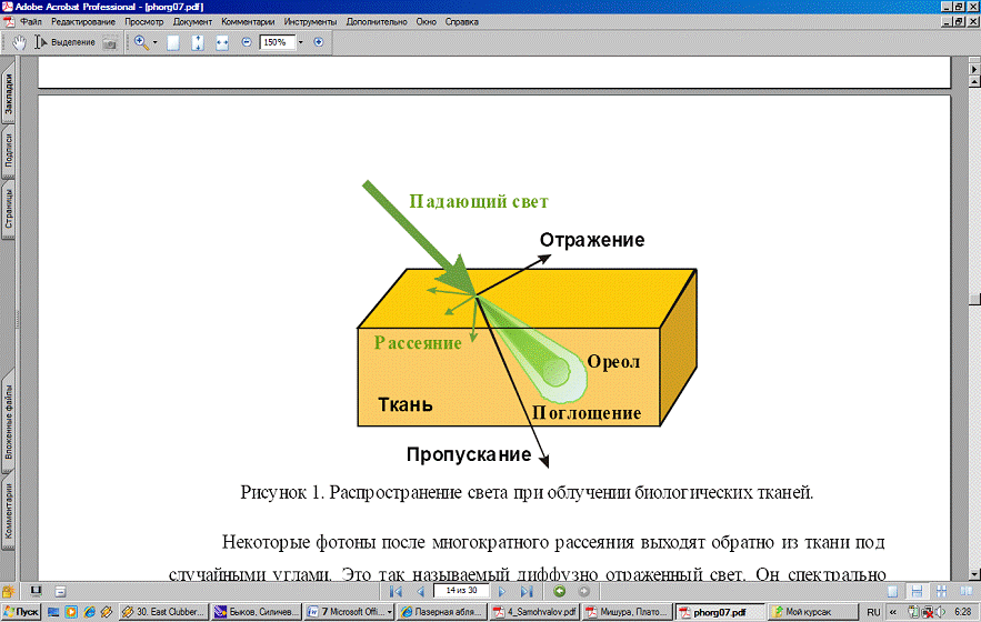 Распределение энергии при лазерном облучении биотканей