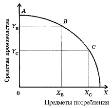 выбор точки на кривой производственных возможностей) предопределяет будущее