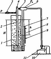 определяется разностью уровней столбов воды в баллоне 1 и трубке 7,