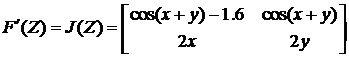 % Значение функций= newton(x,y,e,F0,F1,dF0x,dF0y,dF1x,dF1y);('Решение