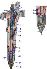 Топливо подводится от топливного насоса к штуцеру корпуса форсунки и через него
