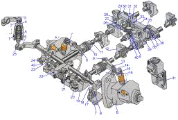 22, 28, 30, 34, 35, 42 - рычаги; 4, 21, 25 - тяги; 5, 10, 29, 33 - пружины; 7 -
