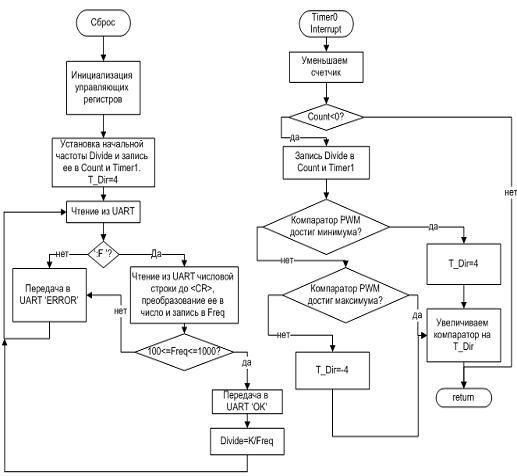 программируются как выходы. Далее инициализируется таймер-счетчик 1 на работу в