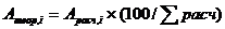 - суммарное количество компонентов в расчетном составе стекла, мас. ч.