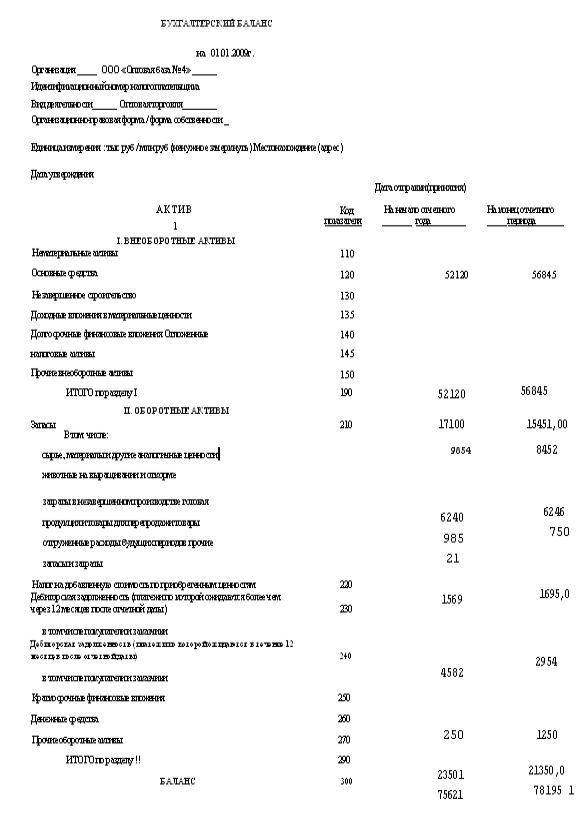 анализируемого предприятия в отчетном периоде, в будущем ООО «Оптовая база № 4»