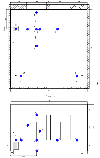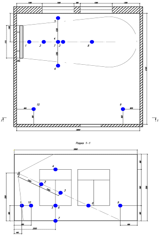 облучателя, смонтированного на стене на высоте 2,5м от пола. (Рис.1)
