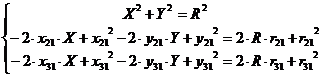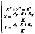 начало координат в центр первой окружности