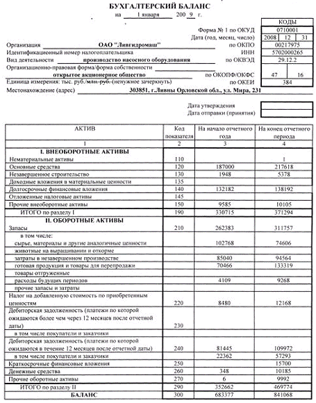 деятельность промышленного предприятия ОАО «Ливгидромаш”.