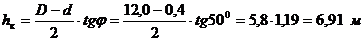 где D = 2,0 м; d = 0,5 м; φ = 600.