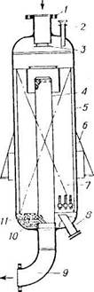 катализатор; 8 - штуцер для выгрузки катализатора; 9 - штуцер выхода продуктов;
