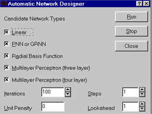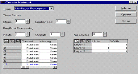 - тип нейронной сети; структура сети - число слоев и элементов в этих слоях;