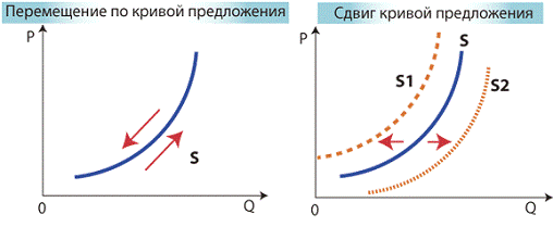 Увеличение предложения блага сдвигает кривую