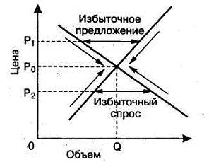 приводится к уровню, который уравнивает объем спроса и объем предложения.