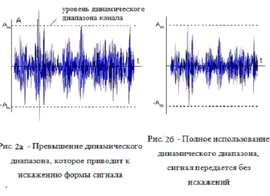 каналу. Превышение сигналом динамического диапазона (рис. 2,а) приводит к