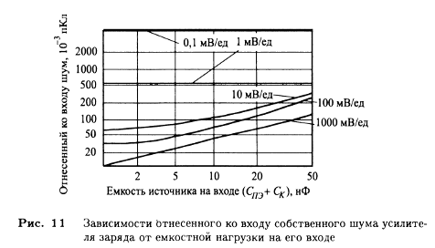усилителя заряда. Хотя увеличение параллельной емкости почти не сказывается на