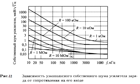 узкополосного собственного шума усилителя заряда от сопротивления нагрузки на