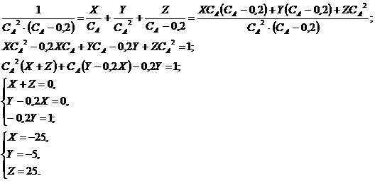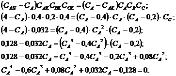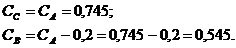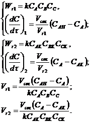 каскада реакторов установим связь между концентрациями реагентов. Для этого
