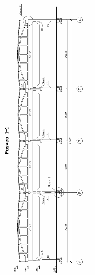 пролета по 18 м и 2 - по 24 м. Шаг средних колонн 6 м; шаг крайних колон = 6 м;