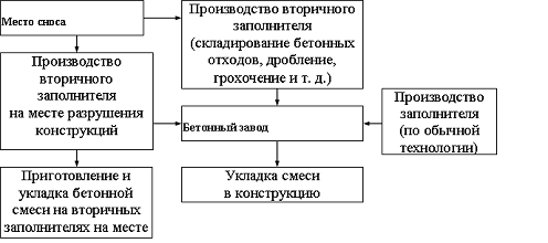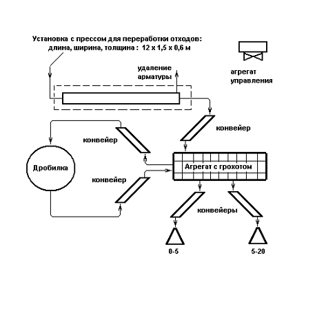 по производству заполнителей, и полученный заполнитель направляется на бетонный