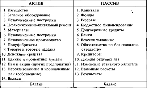 баланса, по другим статьям рекомендовался состав элементов, целесообразных для