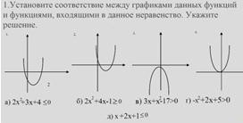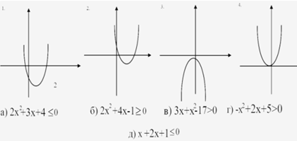графики и вид неравенств, затем отмечают на графиках решение данных неравенств