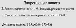 квадратного неравенства, различные способы его решения.