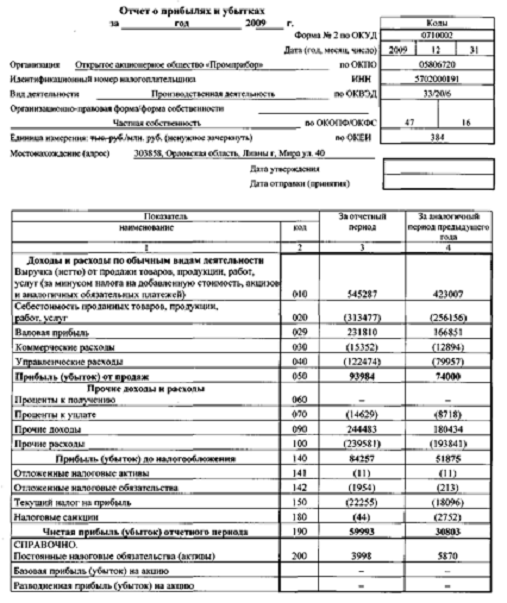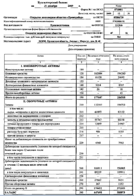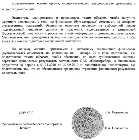 «Промприбор». Необходимо сформировать мнение о достоверности конечного