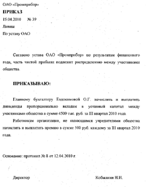 оформлением по распределению части прибыли и начислению дивидендов участникам