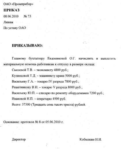 выплате материальной помощи к отпуску ведется не верно. Также неправомерно были