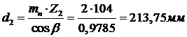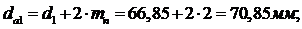 Диаметр окружности вершин зубьев