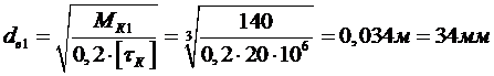 Принимаем допускаемое напряжение при кручении