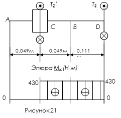 Крутящий момент в расчётном сечении вала равен вращающему моменту на валу