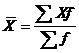 X = (xi * fi) / fi = 2426 / 44 = 55.13 ден. ед.