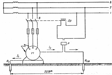 объектом - корпусом электромотора М и вспомогательным заземлителем (R э.в). Этот заземлитель должен быть