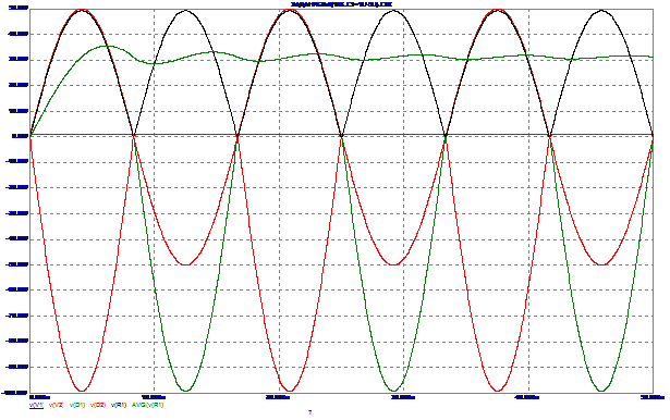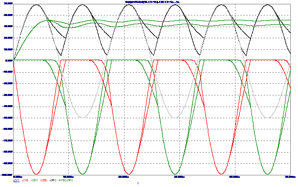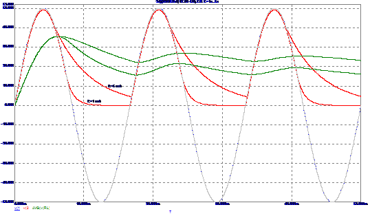 отсутствии фильтра и при наличии ёмкостного и индуктивного фильтров;