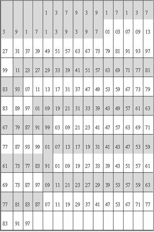 Таблица 1 Простые числа, не превышающие 1000 [1]