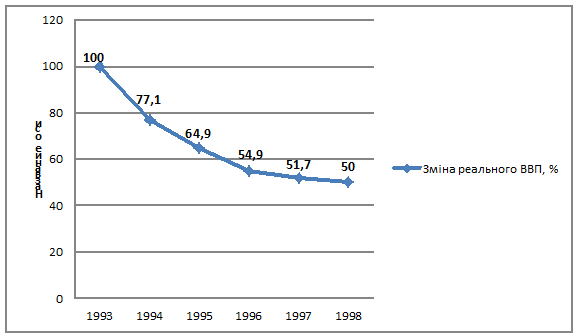 Рис. Д. 9. Зміна реального ВВП у 1993-1998 роках