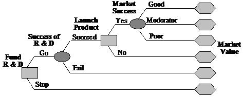 для каждого решения и случайные переменные как ветви, исходящие из каждого