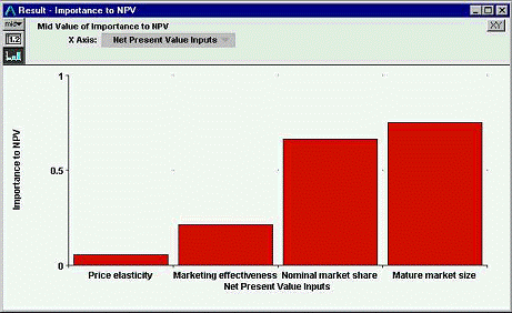 Рис.3.7 Analytica 2.0: визуальное определение влияния разных факторов на