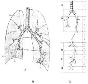 бронхов и заканчивается мельчайшими мешочками, состоящими из альвеол. Наряду с