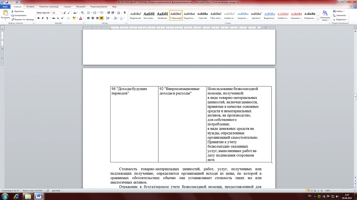 о порядке бухгалтерского учета безвозмездных поступлений (средств),