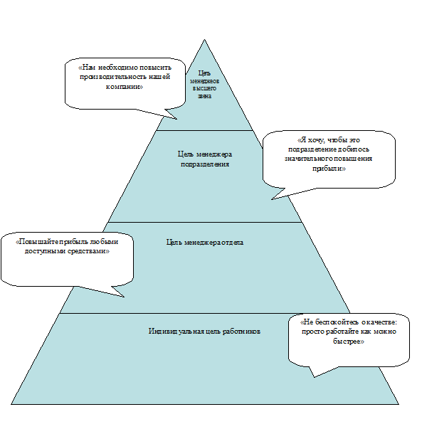подцели для каждого конкретного уровня организации. При таком подходе менеджеры