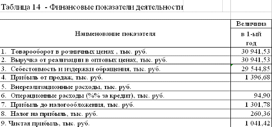 Trading» is made, indicators of efficiency of an investment of investments