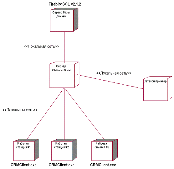 изображена на рисунке 27. Диаграмма размещения устройств и программных средств CRM-системы