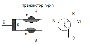 большего объема - коллектором К. Электронно-дырочный переход между К и Б