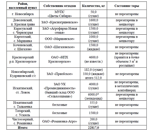 агрохимикатов с истекшим сроком годности, запрещенных к применению).