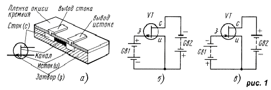 (затвор), в которой имеется тонкая область, называемая каналом (рис.1, а). По