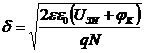 при напряжении на затворе Uзи = 0 для резкого перехода, что справедливо