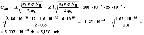 Ёмкость затвора рассчитаем как барьерную ёмкость р-п перехода